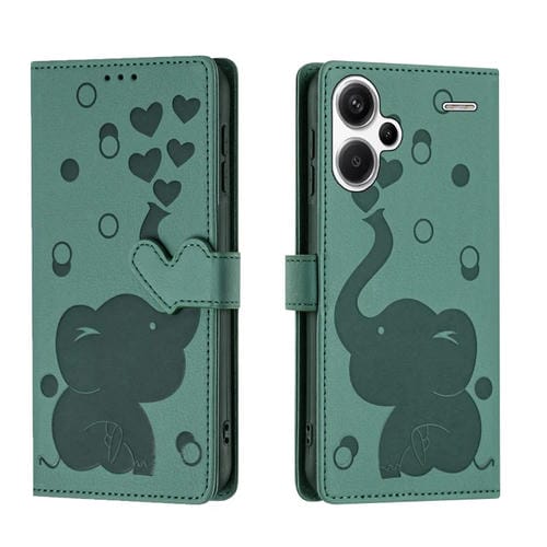 Funda de Cuero con Relieve de Elefante de Dibujos Animados para Redmi Note 13 Pro+ (Verde)