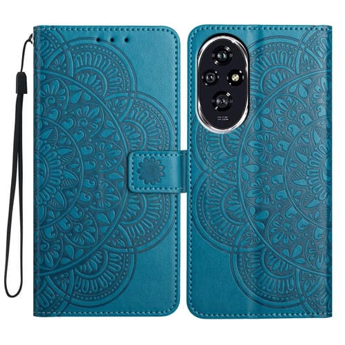 Funda de Cuero con Relieve Floral para Honor 200 (Azul)