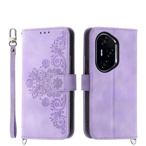 Funda de Cuero con Relieve de Flores para Honor 300 Pro/300 Ultra (Morado)