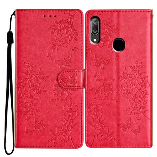 Funda de Cuero con Relieve de Mariposa y Flor para Huawei Y6 2019 (Rojo)