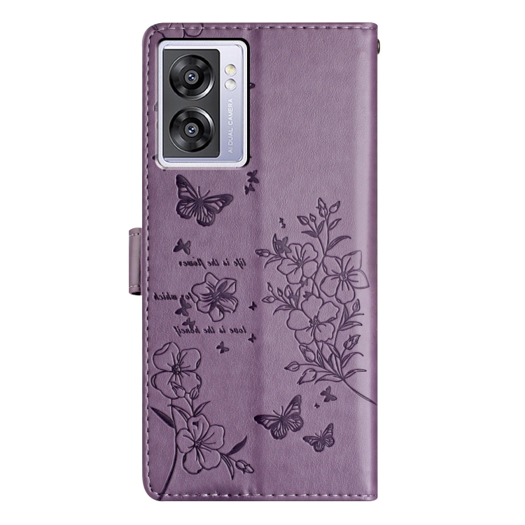 Funda de Cuero con Relieve de Mariposa y Flor para Oppo A57 4G/5G/A77 5G (Morado)