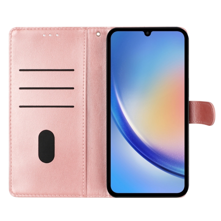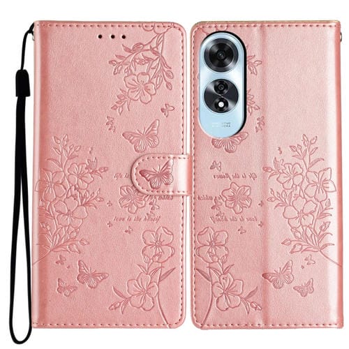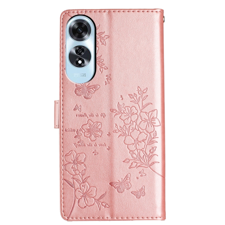 Funda de Cuero con Relieve de Mariposa y Flor para Oppo A60 (Oro Rosa)
