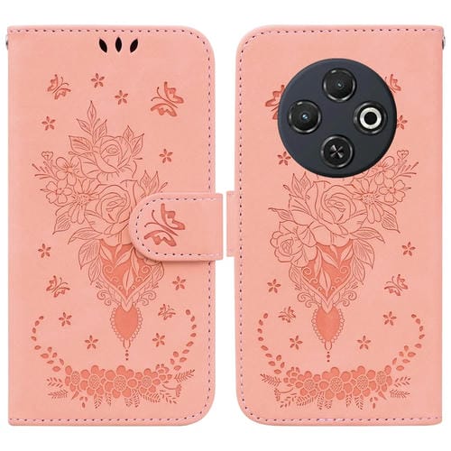 Funda de Cuero con Relieve Mariposa y Rosa para Tecno Spark 30C (Rosa)