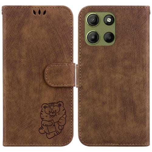 Funda de Cuero con Relieve de Tigre para Motorola Moto G15 (Marrón)