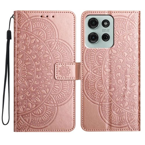 Funda de Cuero con Relieve Floral para Motorola Moto G75 5G (Oro Rosa)