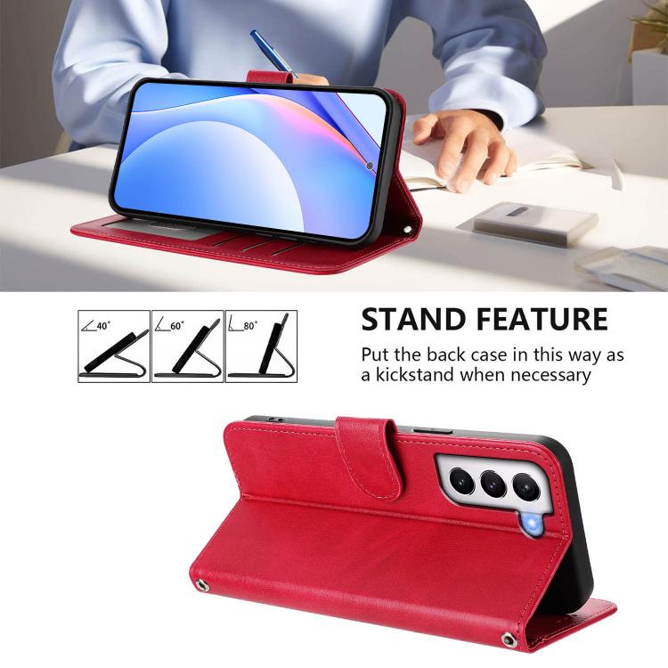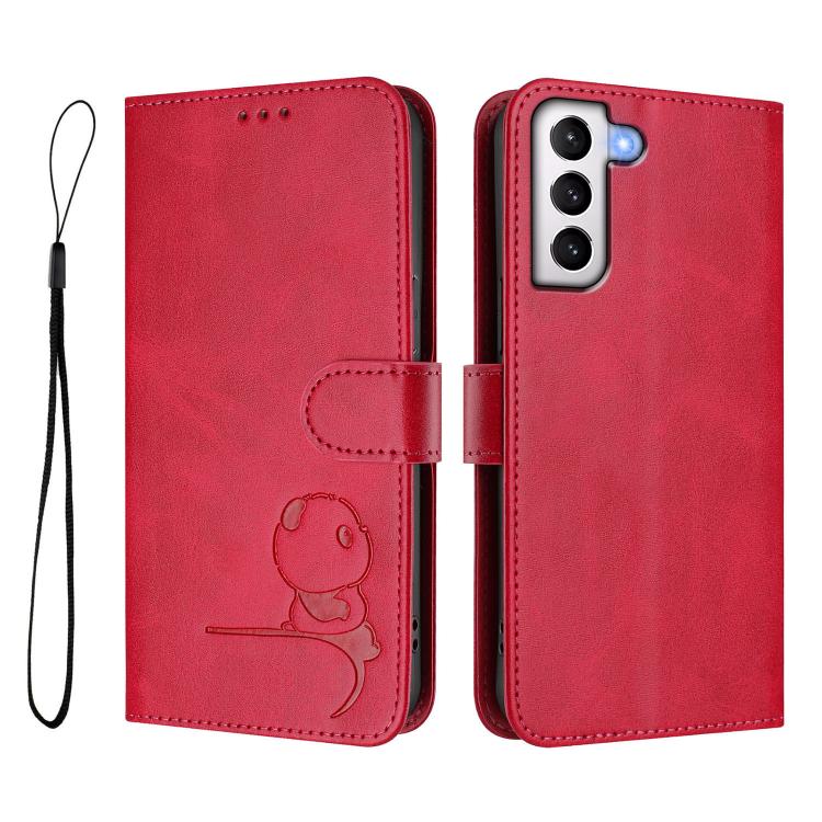 Funda de cuero con relieve RFID y cordón para Samsung Galaxy S21+ 5G (rosa y rojo)