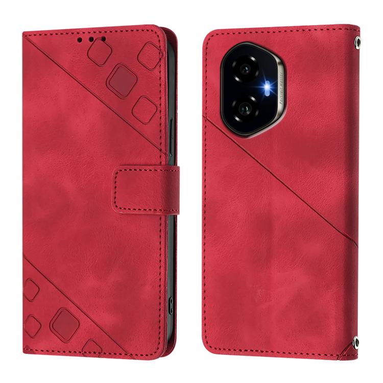 Funda de Piel con Relieve para Honor 300 5G (Roja)
