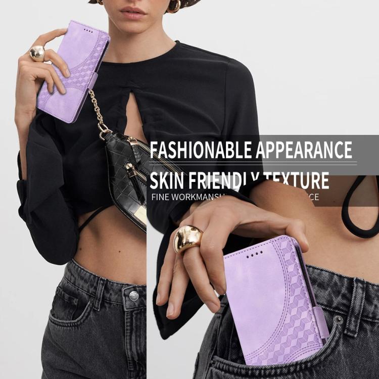 Funda de Cuero con Rombos y Estrellas para Honor 300 Pro (Morado)