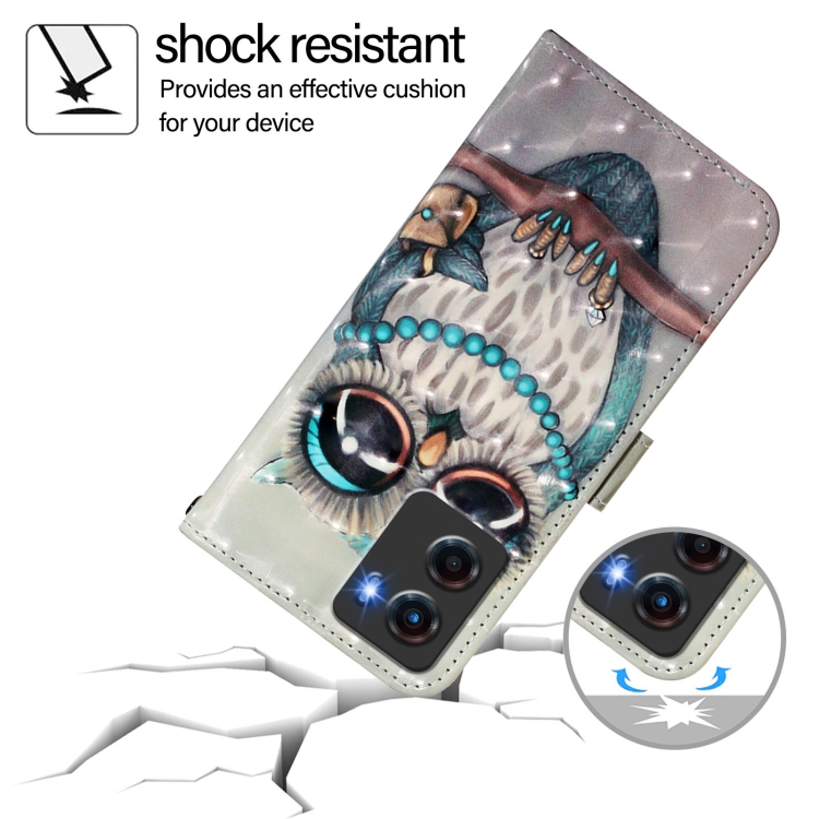 Funda de Cuero con Tapa Horizontal y Pintura 3D para Motorola Moto G05 (Búho Gris)