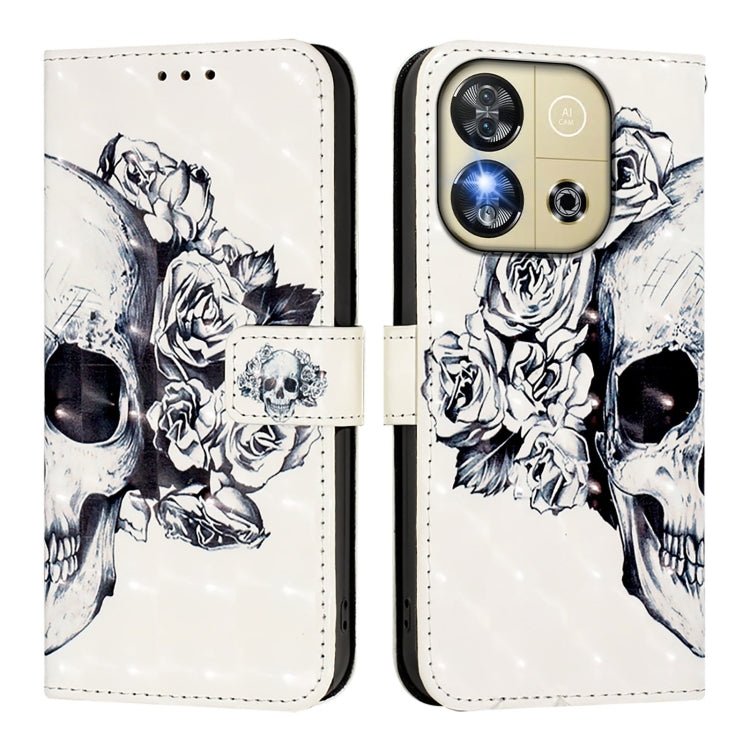 Funda de Cuero con Tapa Horizontal y Pintura 3D para Oukitel C57S (Calavera)