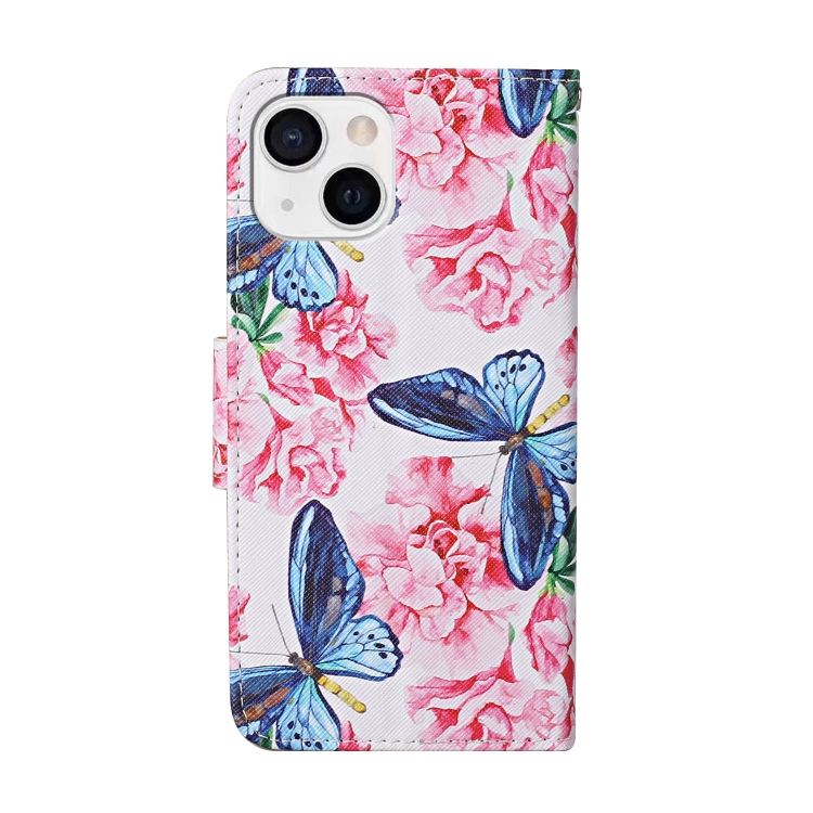 Funda de Cuero con Tapa para iPhone 13 Mini Patrón Dibujo a Color (Flor de Libélula)