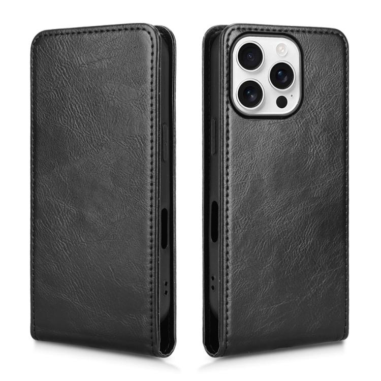 Funda de Cuero con Tapa Vertical Magnética para iPhone 16 Pro Max (Negra)