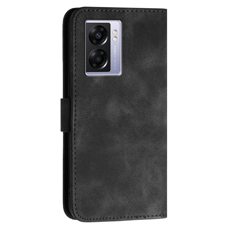 Funda de Cuero con Tapa y Cordón para Oppo A57S 4G Global Yx0080 con Diseño En Relieve de Mariposa y Cuadrícula (Negro)
