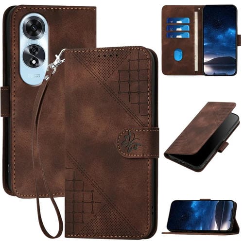 Funda de Cuero con Tapa y Cordón para Oppo A60 4G Yx0080 con Diseño En Relieve de Mariposa y Cuadrícula (Café)