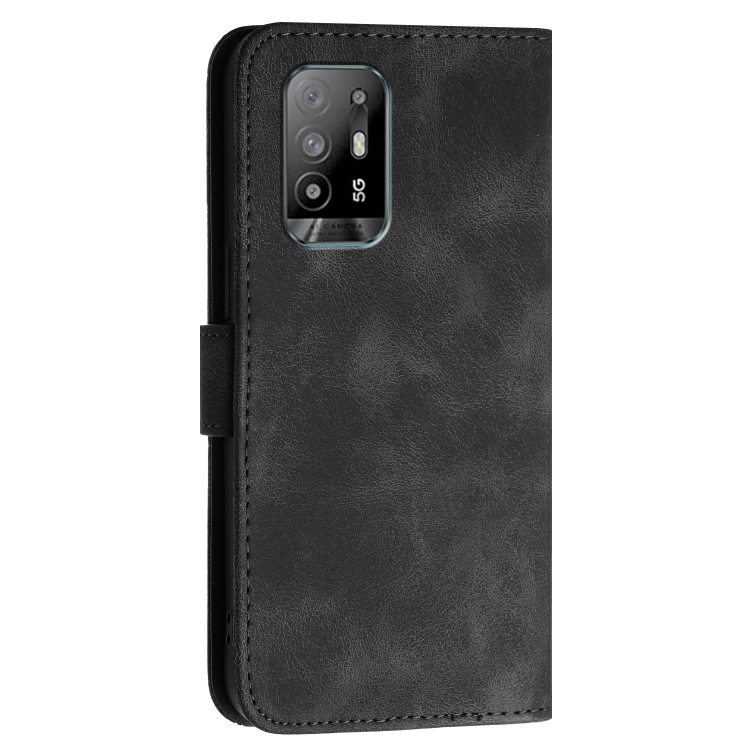 Funda de Cuero con Tapa y Cordón para Oppo F19 Pro+ / A94 4G Yx0080 con Diseño En Relieve de Mariposa y Cuadrícula (Negro)