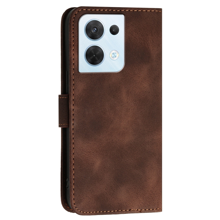 Funda de Cuero con Tapa y Cordón para Oppo Reno8 5G Global Yx0080 con Diseño En Relieve de Mariposa y Cuadrícula (Café)