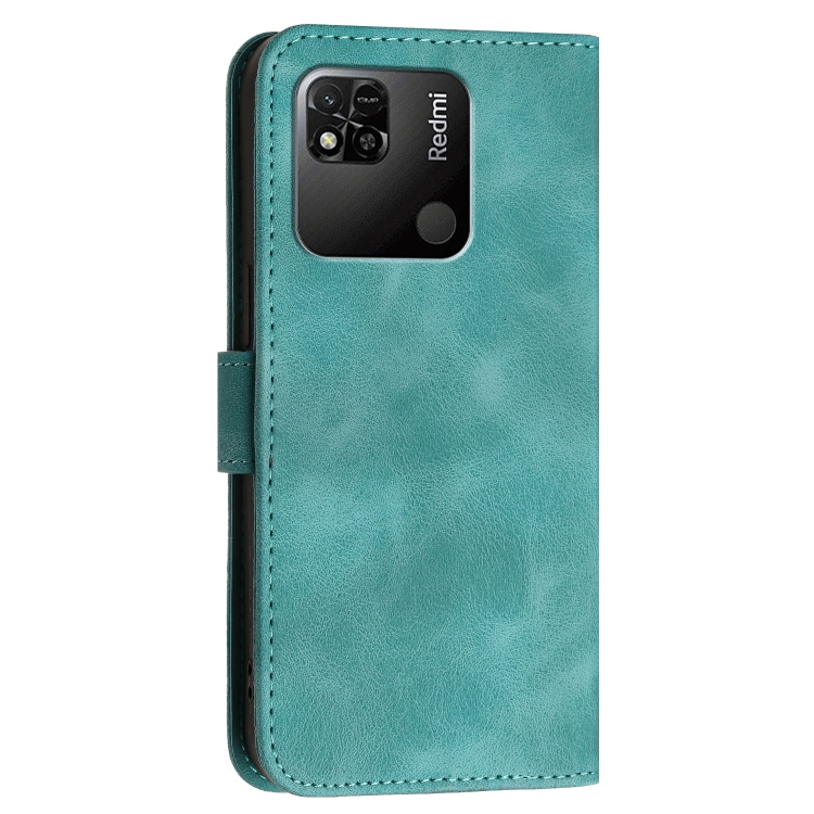 Funda de Cuero con Tapa y Cordón para Redmi 10A Yx0080 con Diseño En Relieve de Mariposa y Cuadrícula (Azul Claro)
