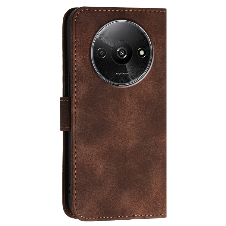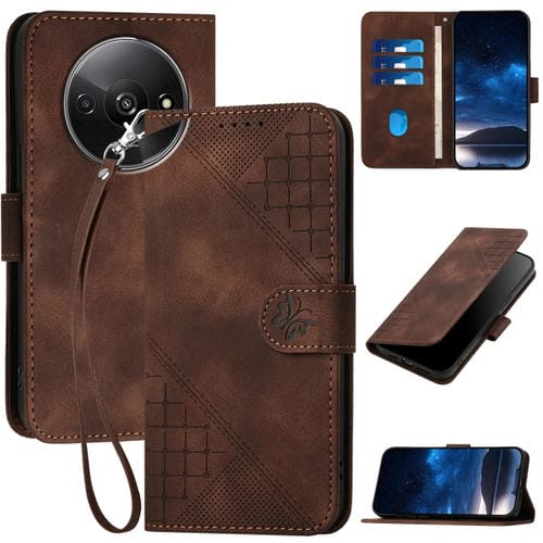 Funda de Cuero con Tapa y Cordón para Redmi A3 Yx0080 con Diseño En Relieve de Mariposas y Cuadrícula (Café)