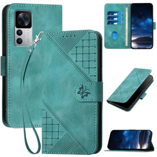 Funda de Cuero con Tapa y Cordón para Redmi K50 Ultra Yx0080 con Diseño En Relieve de Mariposa y Cuadrícula (Azul Claro)
