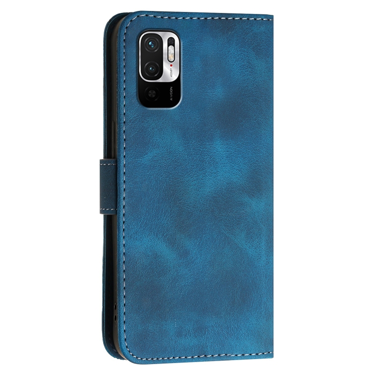 Funda de Cuero con Tapa y Cordón para Redmi Note 10 5G Yx0080 con Diseño En Relieve de Mariposa y Cuadrícula (Azul Oscuro)