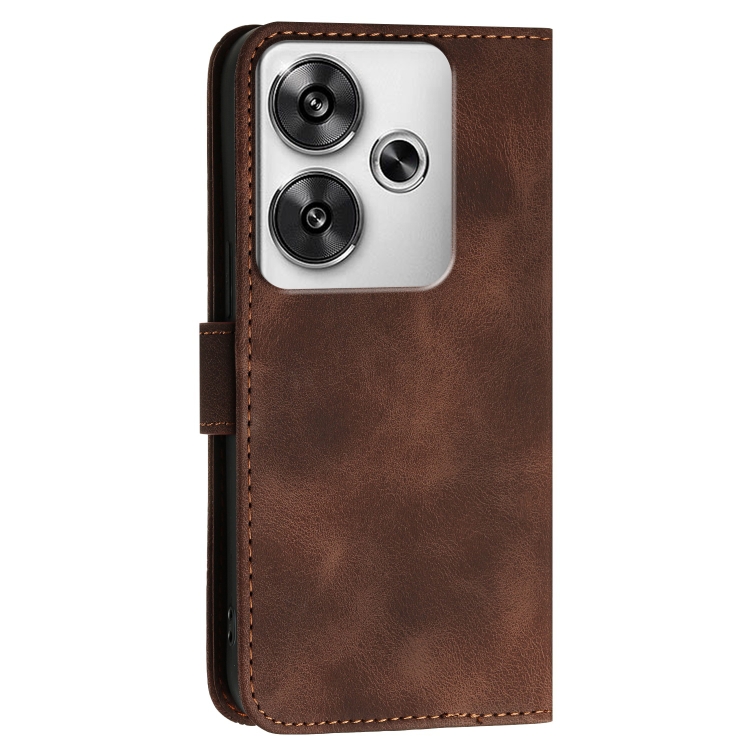 Funda de Cuero con Tapa y Cordón para Redmi Turbo 3 Yx0080 con Diseño En Relieve de Mariposas y Cuadrícula (Café)