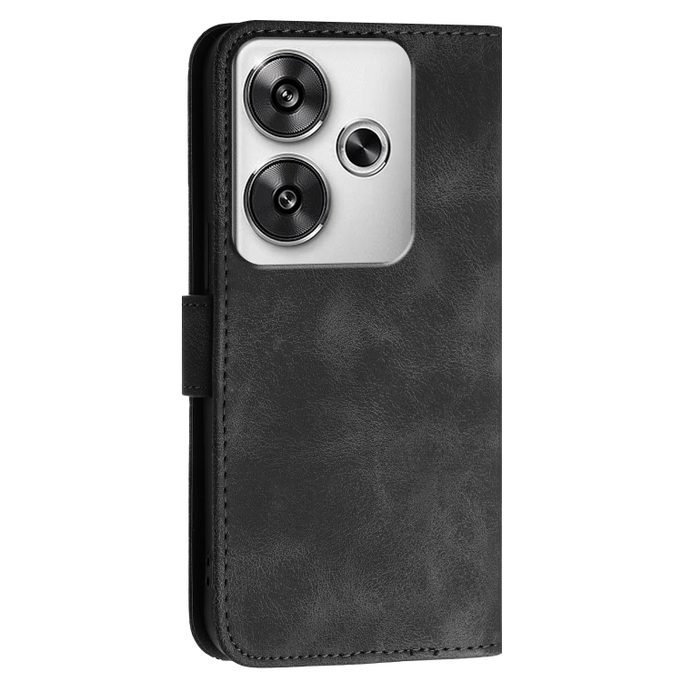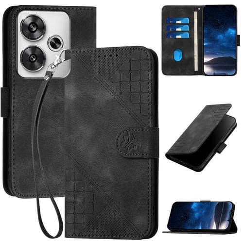 Funda de Cuero con Tapa y Cordón para Redmi Turbo 3 Yx0080 con Diseño En Relieve de Mariposas y Cuadrícula (Negro)