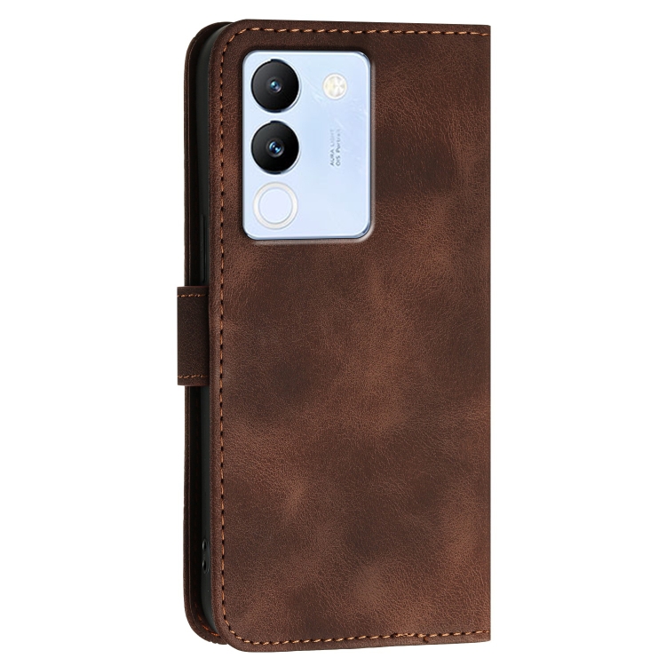Funda de Cuero con Tapa y Cordón para Vivo V29E 5G Global Yx0080 con Diseño En Relieve de Mariposas y Cuadrícula (Café)