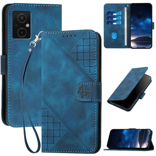Funda de Cuero con Tapa y Cordón para Xiaomi Poco M5 Yx0080 con Diseño En Relieve de Mariposa y Cuadrícula (Azul Oscuro)