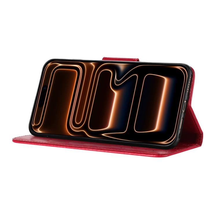 Funda de cuero con tapa y diseño de mariposas y flores para iPhone 17 Pro (roja)