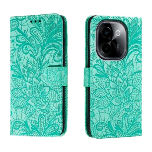 Funda de Cuero con Tapa y Estampado de Flores de Encaje para Vivo Y200 5G (Verde)