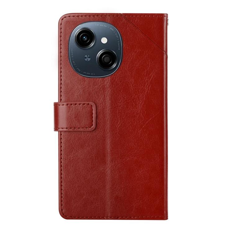 Funda de Cuero con Tapa y Patrón en Forma de Y para Tecno Pop 9 4G / Spark Go 2025 4G (Marrón)