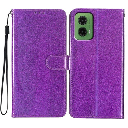 Funda de Cuero con Tapa y Purpurina para Motorola Moto G35 (Morado)