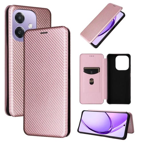 Funda de Cuero con Textura de Fibra de Carbono para Oppo A3X 5G (Rosa)