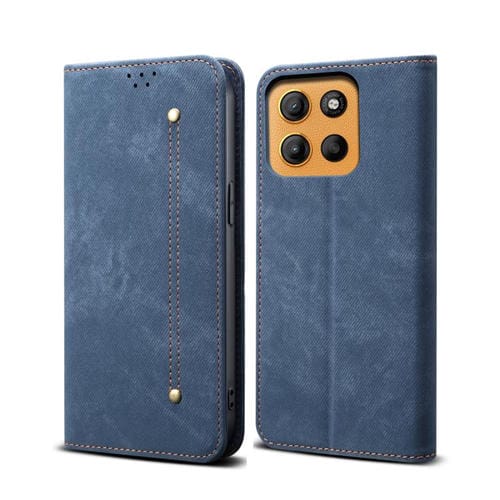 Funda de Cuero con Tapa y Textura Vaquera para Motorola Moto G15 (Azul)