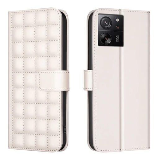 Funda de Cuero con Textura Cuadrada para Teléfono Xiaomi 13T / Redmi K60 Ultra (Beige)