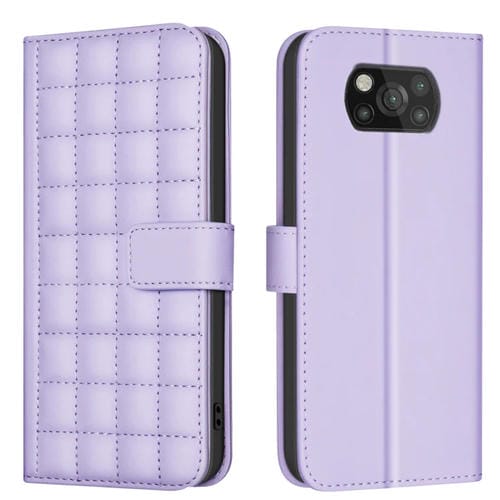 Funda de Cuero con Textura Cuadrada para Teléfono Xiaomi Poco X3/X3 Nfc (Morado)