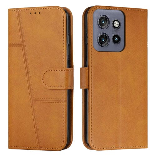 Funda de Cuero Textura de Becerro con Hebilla para Motorola Edge 50 Neo (Amarillo)