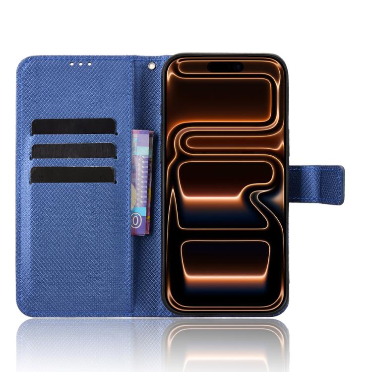Funda de cuero con textura de diamante para iPhone 17 Pro Max (azul)