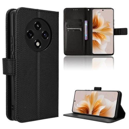 Funda de Cuero con Textura de Diamante para Oppo F27 Pro 5G / F27 Pro+ 5G (Negra)