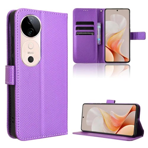 Funda de Cuero con Textura de Diamante para Vivo S19 5G (Morado)