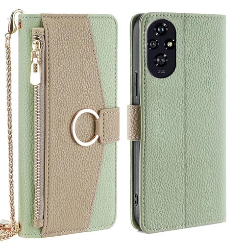 Funda de Cuero Textura de Lichi para Honor 200 5G con Diseño Cruzado (Verde)