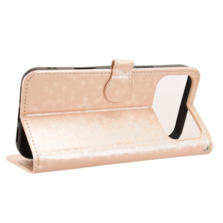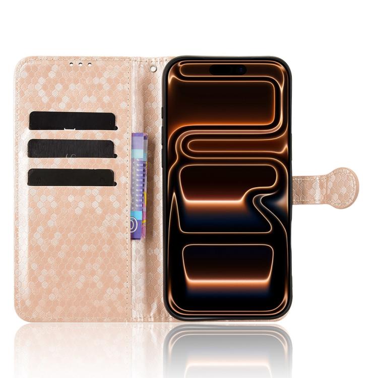 Funda de cuero con textura de lunares y panal para iPhone 17 Pro Max (dorada)