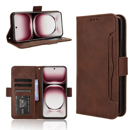 Funda de Cuero con Textura de Piel de Becerro y Ranuras para Tarjetas para Oppo Reno12 5G Global (Marrón)