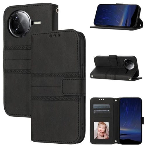Funda de Cuero con Textura de Piel de Serpiente con Rayas En Relieve para Redmi K80 5G/K80 Pro 5G (Negra)