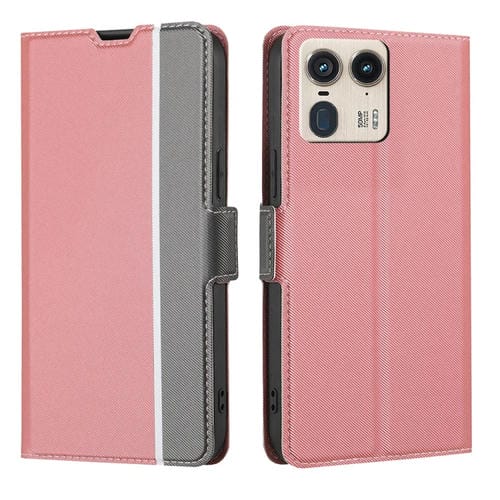 Funda de Cuero con Textura de Sarga y Botones Laterales para Motorola Edge 50 Ultra (Rosa)