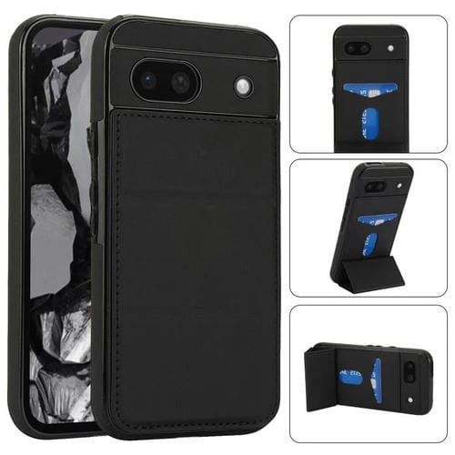 Funda de Cuero para Google Pixel 8A con Tres Pliegues y Ranura para Tarjetas (Negra)