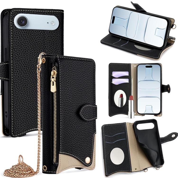 Funda de cuero de lichi con diseño de cola de pez y cadena cruzada para iPhone Air (negra)