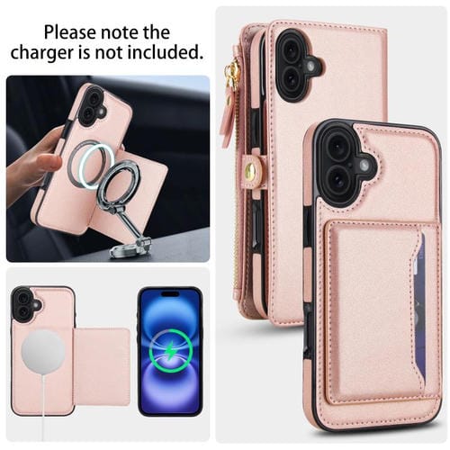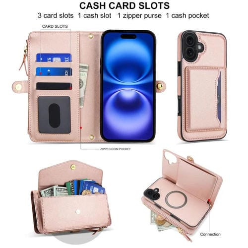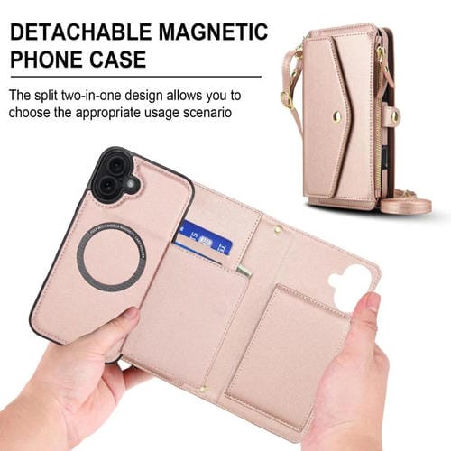 Funda de cuero desmontable con cordón para iPhone 17 (oro rosa)