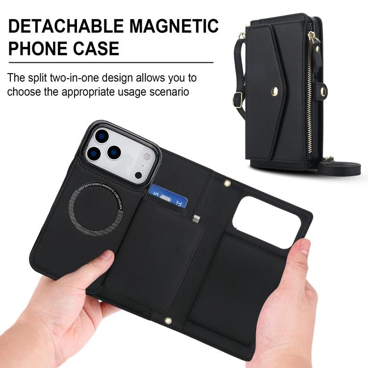 Funda de cuero desmontable con cordón para iPhone 17 Pro Max (negro)