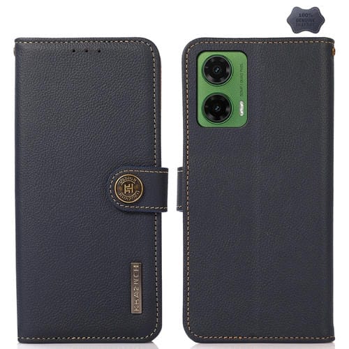Funda Cuero Genuino Rfid para Motorola Moto G35 Khazneh Custer (Azul)